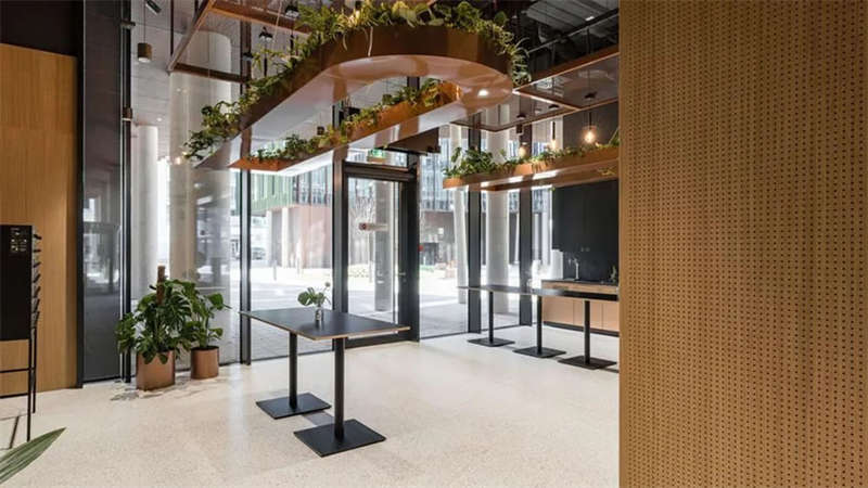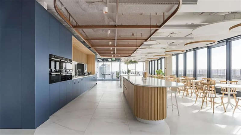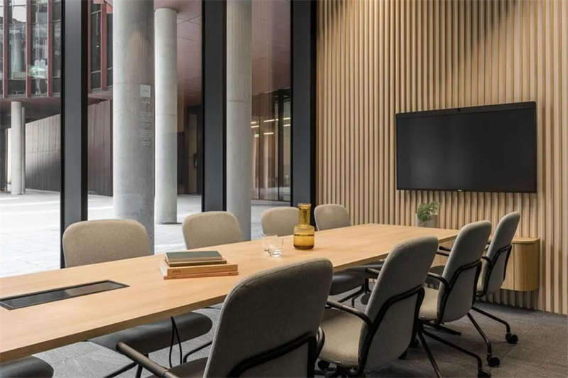 辦公室選擇了電動(dòng)可調(diào)的升降辦公桌,以滿(mǎn)足員工個(gè)性化的需求。為了改善工作區(qū)域的聲學(xué)效果,在工作站之間和燈具上安裝了聲學(xué)板,并采用了大量的織物窗簾,從而減少了辦公室內(nèi)的噪音和混響。此外,在會(huì)議室配置了頂尖的IT/AV系統(tǒng),從而將辦公室工作與遠(yuǎn)程工作緊密連接;安靜的聲學(xué)工作艙則配備了智能照明和高效通風(fēng)系統(tǒng)。