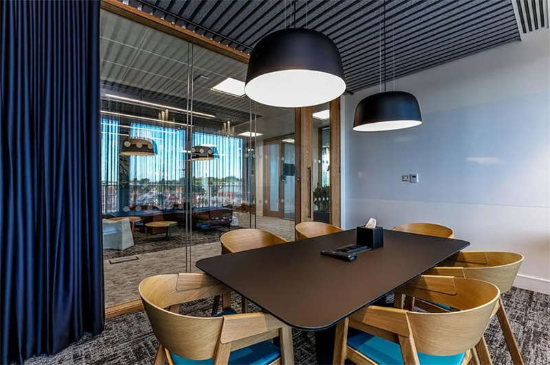 照明方案采用了多種光照的組合形式,以創(chuàng)建自然日光的感覺。對于技術(shù)部門來說,重要的是照明不能太高科技感或像一個大燈箱,因此這里使用了軌道照明代替漫射器和聚光燈。會議室以吊燈為主,突出與會人員的面部照明,以及屏幕上方用于遠程通話的燈光,因此,需要更專業(yè)的照明設(shè)計,以清晰、明亮的映襯和傳遞人物形象。