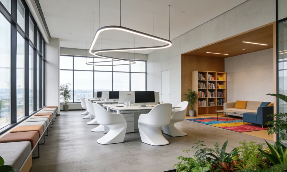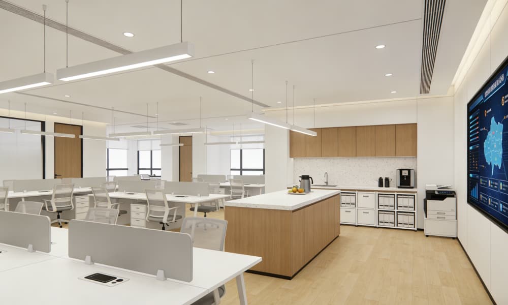 整體色調(diào)以白色、灰色為主,搭配少量黑色線(xiàn)條作為點(diǎn)綴,營(yíng)造出簡(jiǎn)潔大氣的視覺(jué)效果。材料運(yùn)用上,注重質(zhì)感與耐用性,采用玻璃、金屬、石材等現(xiàn)代材質(zhì),彰顯工業(yè)場(chǎng)所的專(zhuān)業(yè)性與品質(zhì)感。在空間設(shè)計(jì)中,強(qiáng)調(diào)開(kāi)放性與通透感,讓自然光線(xiàn)充分滲透,提高空間的舒適度與工作效率。