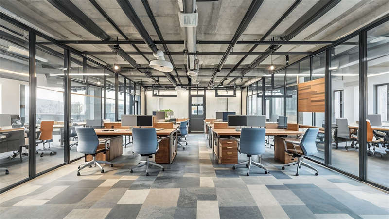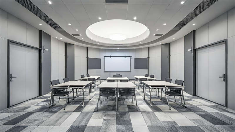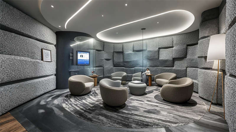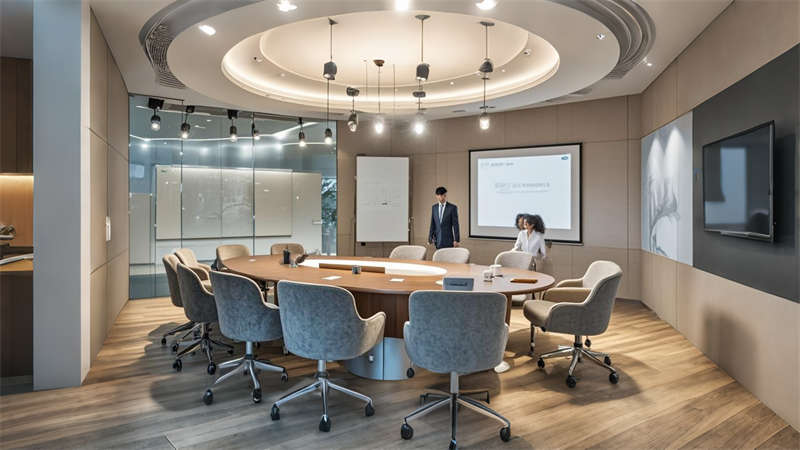 照明設(shè)計(jì)采用 3000K-4000K 色溫分區(qū)控制,重點(diǎn)區(qū)域設(shè)置磁吸軌道燈滿足展陳需求。聲學(xué)處理方面,關(guān)鍵會議室采用雙層中空玻璃與吸音毛氈墻面,確保 45 分貝以下靜音標(biāo)準(zhǔn)。全案貫徹 LEED 認(rèn)證標(biāo)準(zhǔn),90% 建材達(dá)到環(huán)?;厥找?,實(shí)現(xiàn)美學(xué)價(jià)值與實(shí)用功能的有機(jī)統(tǒng)一。