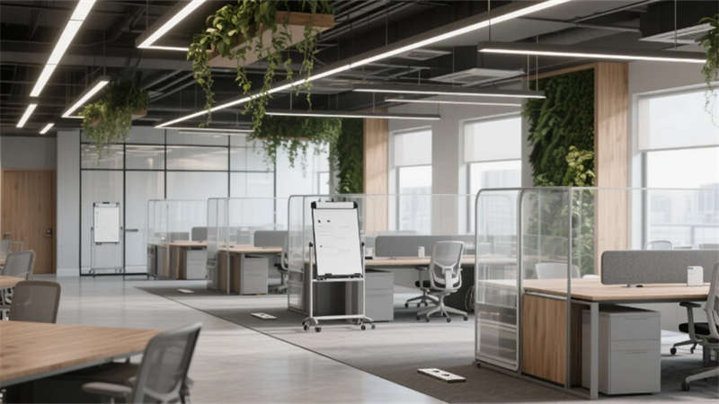 設計更以人文觸覺消解科技冰冷感:企業(yè)標志性的霧青藍貫穿于軟裝細節(jié),4000K色溫照明呵護視覺舒適度,模塊化綠植系統(tǒng)構建立體呼吸網絡。從智能調光玻璃到聲學毛氈墻面,每處創(chuàng)新皆隱于無形,讓科技真正服務于人的感知體驗。這座合肥辦公空間,正以靜默的設計語言詮釋著未來工作場域的更多可能——當自然、科技與人文在此共振,辦公不再是程式化的容器,而成為激發(fā)創(chuàng)造力的有機生命體。