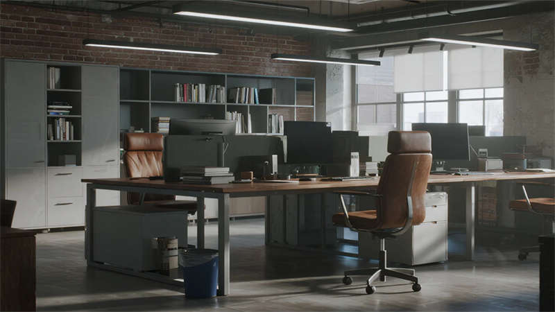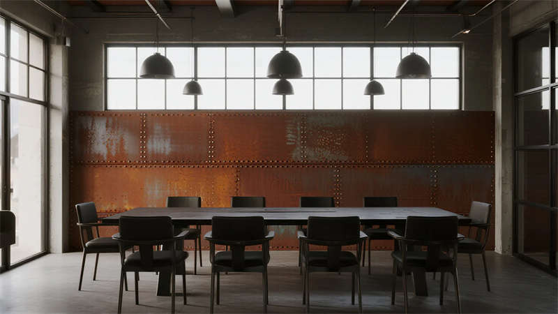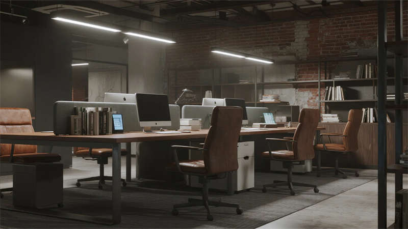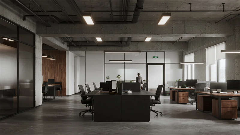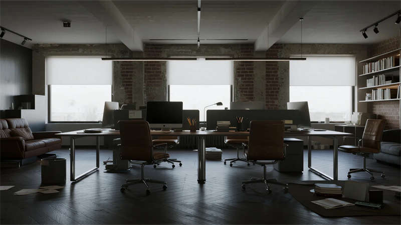 這組工業(yè)風(fēng)辦公室設(shè)計(jì)以裸露結(jié)構(gòu)和復(fù)古質(zhì)感為核心,通過混凝土、金屬和木質(zhì)材料的碰撞,打造出兼具實(shí)用性與藝術(shù)感的辦公空間??臻g保留了建筑的原始肌理,如天花板的管線和墻面的磚紋,搭配黑色鐵藝家具和深色調(diào)軟裝,營造出冷峻而富有張力的氛圍。局部通過皮質(zhì)沙發(fā)、綠植和暖光燈具軟化工業(yè)風(fēng)的硬朗感,增添人文氣息。