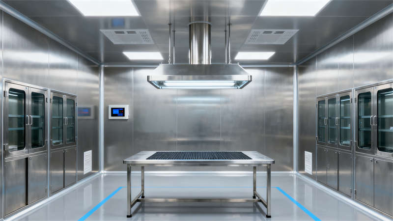 室內(nèi)空間圍繞醫(yī)療器械生產(chǎn)需求展開,各區(qū)域設(shè)計既適配功能,又保持視覺統(tǒng)一。無菌組裝區(qū)域選用無縫潔凈材質(zhì),避免積塵殘留,保障生產(chǎn)環(huán)境;精密檢測區(qū)側(cè)重隔音與光線控制,為檢測工作營造低干擾氛圍;原料倉儲區(qū)以規(guī)整的貨架布局,適配物料存放需求;研發(fā)實驗室設(shè)置島式實驗臺與通風柜,兼顧實驗操作與中試功能;潔凈走廊通過指引設(shè)計明確人流物流方向,確保流程有序;無菌更衣區(qū)按潔凈流程分區(qū),實現(xiàn)人員潔凈過渡;中控室以核心監(jiān)控設(shè)備為中心,方便實時掌握廠房運行狀態(tài)。