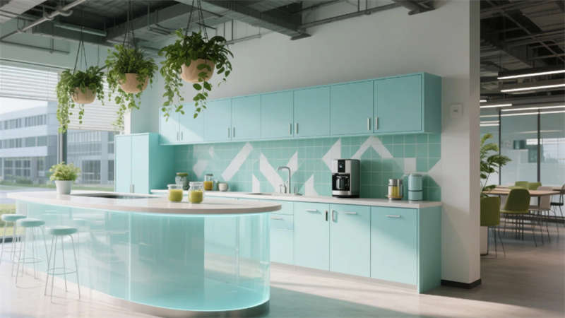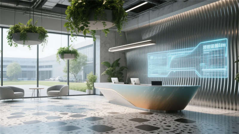 智能協(xié)作區(qū)配備環(huán)形數(shù)字屏幕與可書(shū)寫(xiě)隔斷,激發(fā)團(tuán)隊(duì)創(chuàng)造力;靜音艙體與獨(dú)立辦公室滿(mǎn)足深度工作需求。員工休憩區(qū)通過(guò)柔和的馬卡龍色調(diào)與曲線家具,營(yíng)造松弛氛圍。接待廳的波紋金屬墻與全息投影臺(tái),在溫潤(rùn)木元素中點(diǎn)綴未來(lái)感。