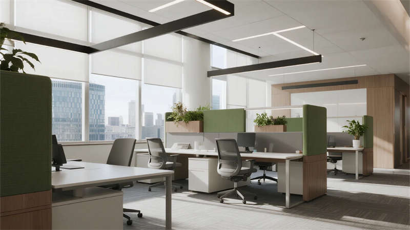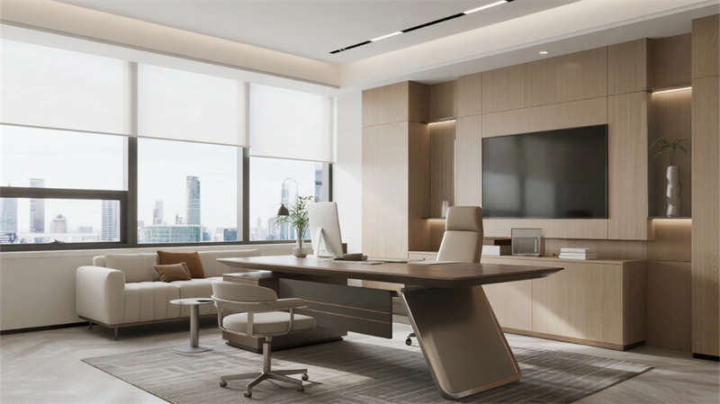 本設(shè)計以現(xiàn)代簡約風(fēng)格為核心,強(qiáng)調(diào)功能與美學(xué)的和諧統(tǒng)一,為辦公環(huán)境注入靈動活力。整體空間采用淺色調(diào)基座,搭配玻璃幕墻和金屬元素,營造通透輕盈的視覺體驗。辦公樓外觀以幾何線條勾勒城市天際線,大廳作為樞紐,以簡約接待臺和綠植迎接訪客,傳遞專業(yè)與親和力。電梯間延續(xù)寧靜氛圍,鏡面設(shè)計拓展空間感。開放辦公區(qū)注重協(xié)作,靈活布局促進(jìn)效率,自然光透過落地窗灑滿區(qū)域,綠植分隔既美觀又環(huán)保。經(jīng)理辦公室和總裁辦公室以私密性與開放性平衡,簡約家具與城市景觀結(jié)合,提升工作舒適度。會議室功能性強(qiáng),玻璃墻增強(qiáng)通透感,便于創(chuàng)意碰撞。樓頂花園作為休憩綠洲,綠色屋頂與簡約座椅提供放松空間,呼應(yīng)環(huán)保理念。設(shè)計融入蚌埠地域特色,汲取城市活力與自然元素,打造高效、舒適且可持續(xù)的辦公環(huán)境,體現(xiàn)現(xiàn)代工作方式的優(yōu)雅蛻變。