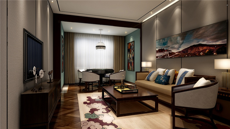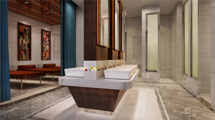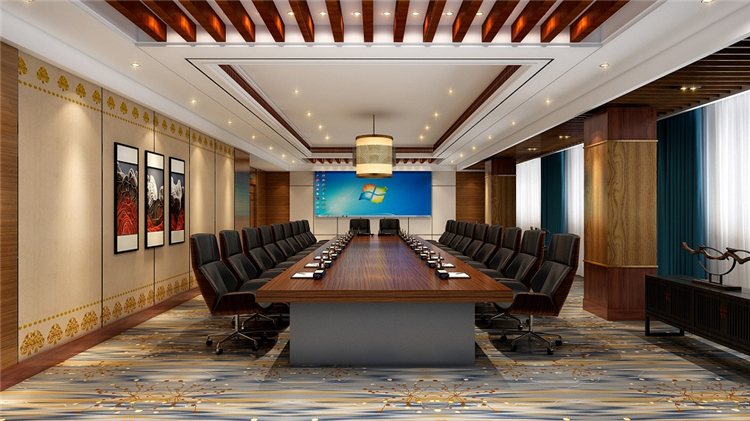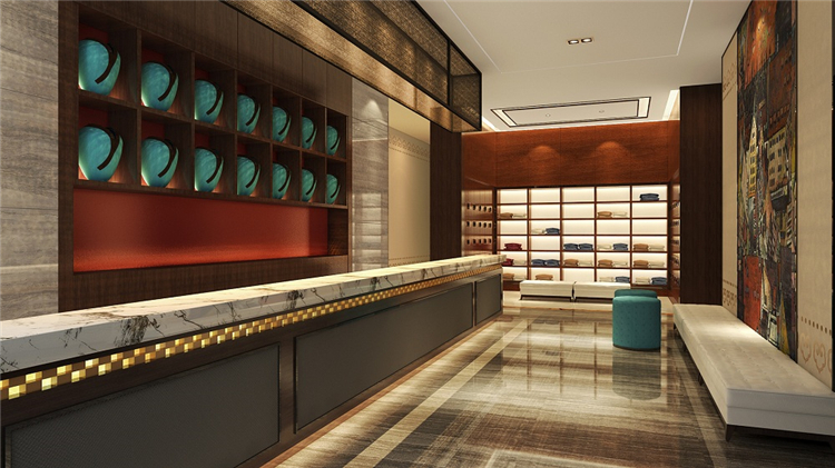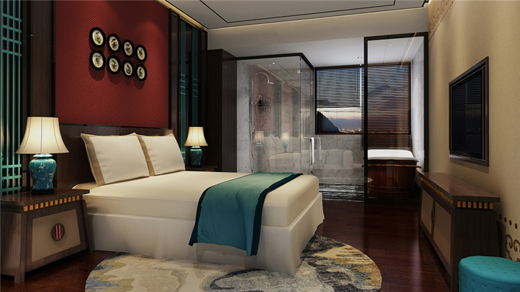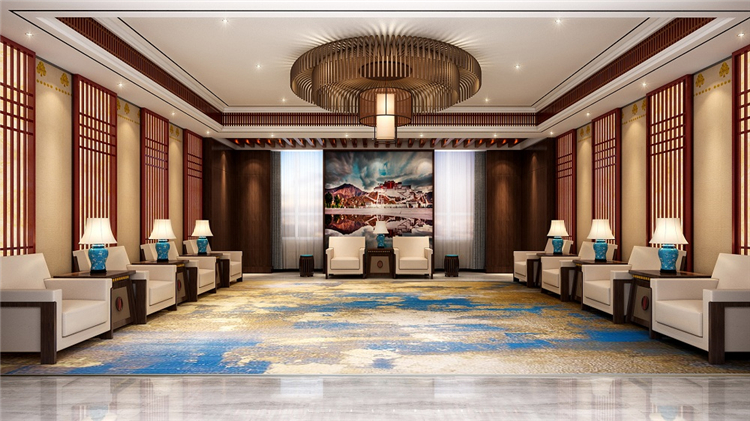設(shè)計(jì)師同時(shí)考慮到地域民族文化和功能實(shí)用性,結(jié)合現(xiàn)代簡約與傳統(tǒng)藏式風(fēng)格,為往來的游客提供一個(gè)放松休憩的完美場所。設(shè)計(jì)師主要運(yùn)用藏藍(lán)、金黃、喇嘛紅等濃重色彩進(jìn)行搭配,靈感既來自于藏族傳統(tǒng)文化及宗教藝術(shù),也來自于雪域高原山高天藍(lán)水長花艷的自然景觀。借用柱網(wǎng)結(jié)構(gòu)、幾何紋路、吉祥花等藏式建筑形式和圖案進(jìn)行裝飾和點(diǎn)綴,但將繁復(fù)的式樣盡量精簡平面化,取其古樸、神奇、粗獷的神韻,表達(dá)一種平衡、對比、和諧統(tǒng)一的構(gòu)圖規(guī)律和審美思想。