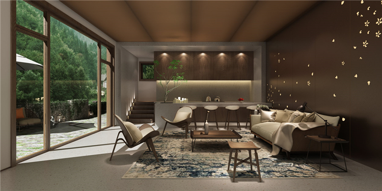 本案度假酒店設(shè)計(jì)的重點(diǎn)在于表達(dá)人與自然、現(xiàn)代裝飾與自然環(huán)境的融合。每一組家具的設(shè)計(jì)、每一個(gè)走廊通道的位置,在這里都能感受到時(shí)尚與自然,毫不違和。