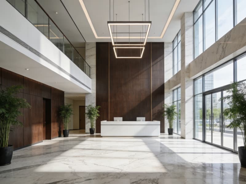 立足合肥科創(chuàng)沃土與人文底蘊(yùn),本次8000㎡辦公樓設(shè)計(jì)以“生態(tài)賦能、智能高效、格調(diào)彰顯”為核心,打造兼具地域辨識(shí)度與現(xiàn)代辦公需求的標(biāo)桿空間。建筑外觀采用極簡(jiǎn)現(xiàn)代風(fēng)格,大面積Low-E玻璃搭配淺灰色金屬線條,既呼應(yīng)合肥濱湖新區(qū)的都市質(zhì)感,又實(shí)現(xiàn)采光與節(jié)能的平衡,夜間燈光點(diǎn)亮?xí)r宛如廬州天際線上的璀璨節(jié)點(diǎn)。