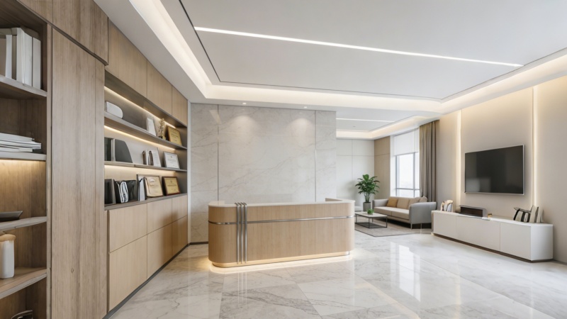 本次辦公樓效果圖聚焦核心公共區(qū)域,以現(xiàn)代簡約風(fēng)格為主,兼顧商務(wù)質(zhì)感與實(shí)用功能。電梯廳整體采用通透化設(shè)計,墻面選用淺灰色啞光石材鋪貼,紋理細(xì)膩且耐臟易打理,搭配金屬線條勾勒輪廓,提升空間層次感。電梯門采用窄邊鋼化玻璃材質(zhì),搭配隱藏式把手,簡約大氣且符合現(xiàn)代辦公審美,門體嵌入柔和感應(yīng)燈光,兼顧實(shí)用性與氛圍感。墻體設(shè)計注重留白與光影結(jié)合,局部點(diǎn)綴淺色系裝飾面板,打破單調(diào)的同時不破壞整體商務(wù)調(diào)性。地面鋪設(shè)防滑耐磨地磚,色澤與墻面呼應(yīng),整體空間采光充足,光線柔和不刺眼,既滿足辦公空間的莊重感,又營造出舒適、高效的通行體驗(yàn),完美適配中高端辦公樓的定位,凸顯簡約而不簡單的設(shè)計理念。