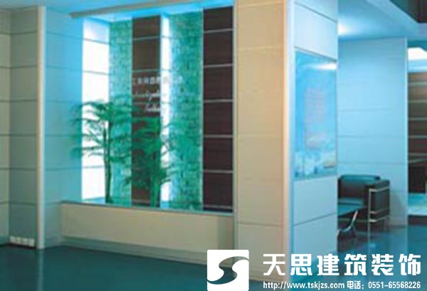 鉆孔固定采用M8×60膨脹螺栓、固定,用12MM的鉆頭打孔,孔深為45MM左右,而后在孔內(nèi)放入M8×60膨脹螺栓。安裝下基層夾槽框架:施工現(xiàn)場預埋階段:配合建設、監(jiān)理、設計等相關部門對辦公室玻璃固定隔斷軸線部位進行定位放線,設定固定軸線基準點及地面裝飾表面水平點,同時對每跨度尺寸進行交尺叉復核,經(jīng)確認無誤后根據(jù)圖紙立柱水平間距對預埋件(防銹處理)進行分布,經(jīng)核對符合要求后由膨脹螺絲進行固定。
