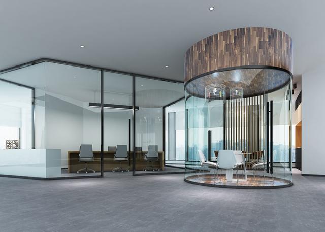 像“巢”一樣的圓柱形洽談區(qū)別有寓意,玻璃材質(zhì)既保證了客戶在洽談時(shí)視覺上的通透,也照顧了客戶心理上對(duì)私密性的需求。