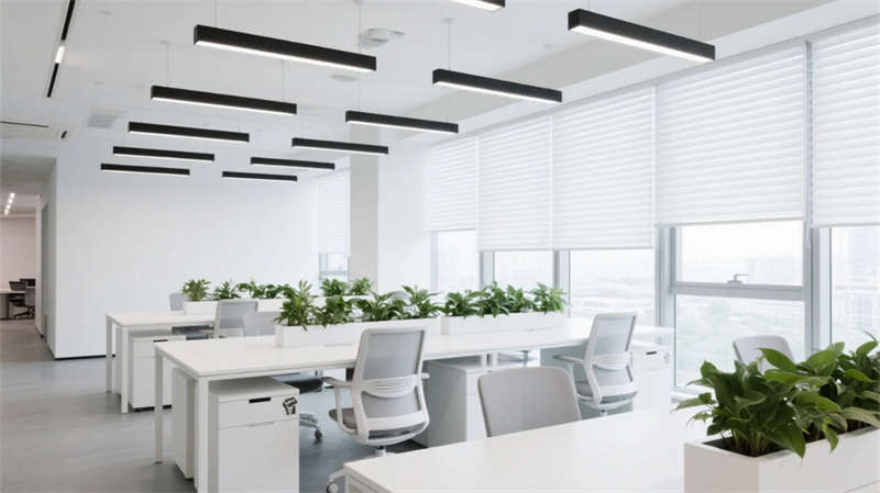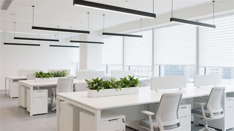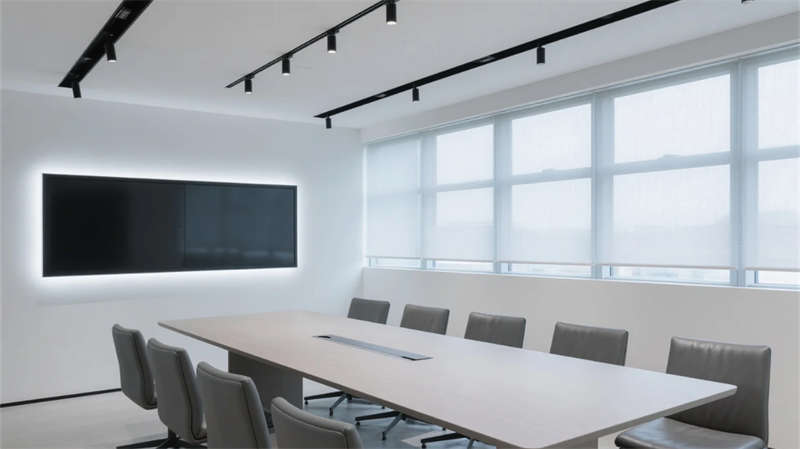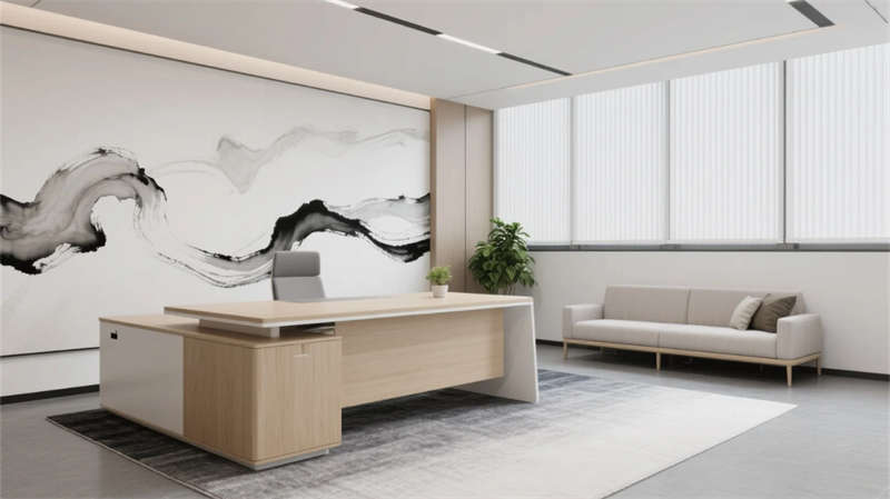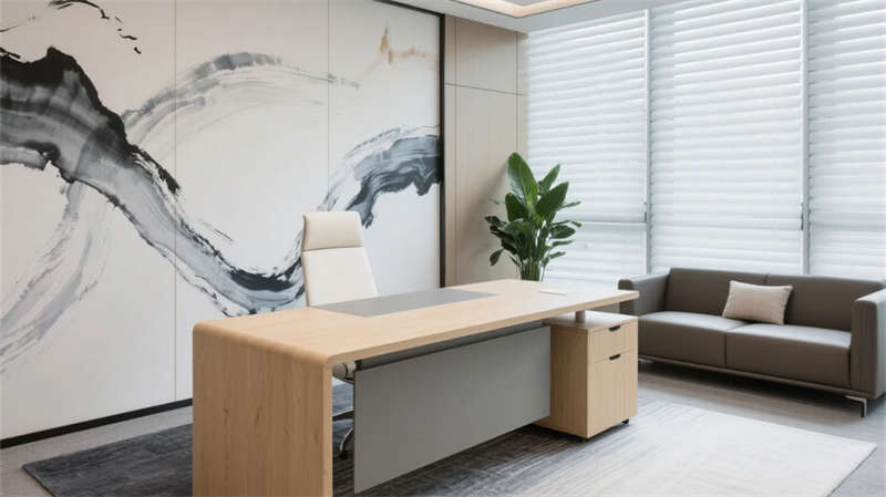 該設(shè)計(jì)以現(xiàn)代簡(jiǎn)約語(yǔ)言重構(gòu)辦公空間秩序,通過光影與材質(zhì)的精妙平衡,營(yíng)造滁州商務(wù)美學(xué)的當(dāng)代樣本??臻g以淺木、暖灰與啞光白為主調(diào),線性光帶貫穿各區(qū)域,形成視覺連續(xù)性。開放辦公區(qū)借落地窗引入瑯琊山景光影,百葉簾調(diào)節(jié)自然與人工光的韻律;協(xié)作區(qū)弧形沙發(fā)與綠植墻柔化幾何理性,激發(fā)團(tuán)隊(duì)創(chuàng)造力。