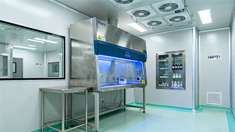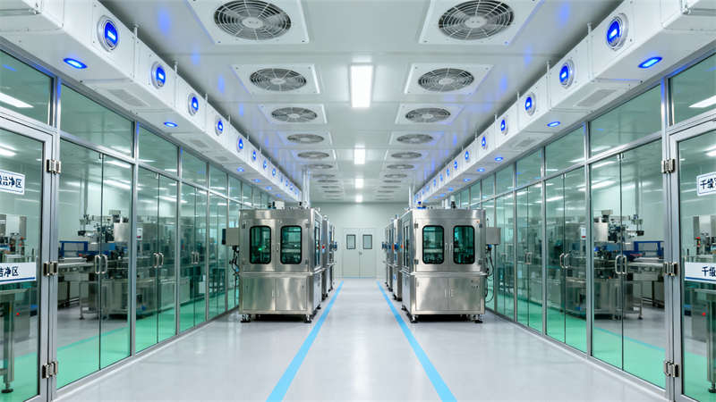 室內空間劃分清晰,入口風淋室作為潔凈第一道防線,搭配專屬衣柜區(qū),助力人員規(guī)范進入;核心生產區(qū)以通透玻璃隔斷劃分,搭配高效過濾設備,營造潔凈通透的操作環(huán)境,操作人員身著專業(yè)潔凈服,盡顯規(guī)范作業(yè)氛圍。輔助區(qū)域同樣注重細節(jié),物料暫存間采用防塵物料架與傳遞窗設計,確保物料潔凈存儲與轉運;無菌實驗室配置專業(yè)安全柜與試劑柜,滿足高潔凈等級操作需求;潔凈走廊通過清晰標識引導動線,連接各功能區(qū)域,提升空間流轉效率;空調機房作為動力核心,設備布局規(guī)整,保障整體潔凈系統(tǒng)穩(wěn)定運行。?