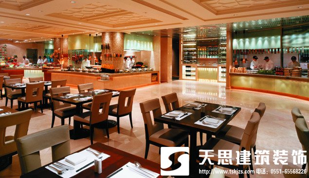 現(xiàn)代餐飲店越來越注重運用適應時代潮流的裝飾設(shè)計新理念,突出餐飲店經(jīng)營的主體性和個性,滿足客人在快節(jié)奏的社會中追求完善舒適的心理需求。因此裝飾設(shè)計要體現(xiàn)"完美舒適即是豪華"這一新理念,一改傳統(tǒng)的繁瑣復雜的設(shè)計手法,通過巧妙的幾何造型、主體色彩的運用和富有節(jié)奏感的"目的性照明"烘托,營造出簡潔、明快、亮麗的裝飾風格和方便、舒適、快捷的經(jīng)營主題。要讓共享大廳空間自然延伸,并與室外綠色景觀融為一體??头垦b飾要突出舒適感和人性化的設(shè)計理念。