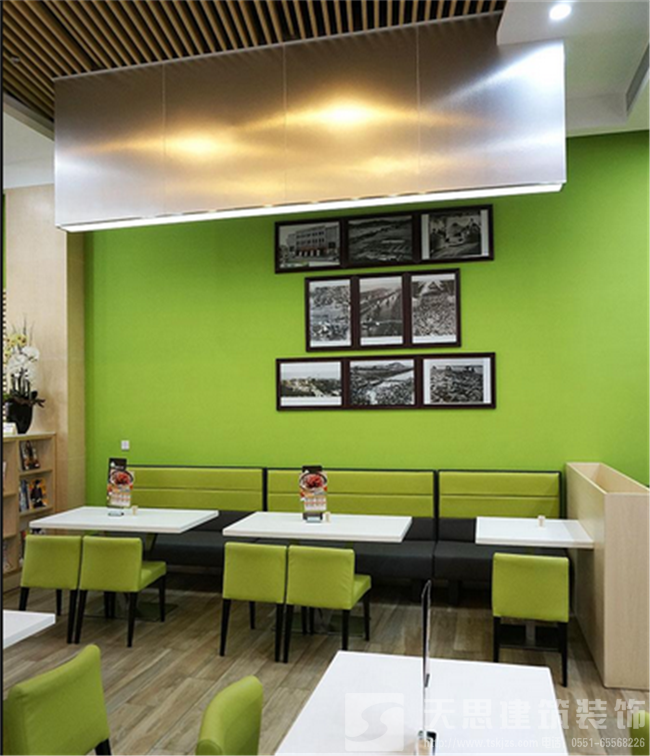 考慮到茶餐廳的飲食文化和特點(diǎn),整個(gè)餐廳設(shè)計(jì)講究明亮通透、舒適清新,為保證有一個(gè)簡(jiǎn)潔明亮的空間效果,又不會(huì)讓整個(gè)環(huán)境過(guò)于雜亂。