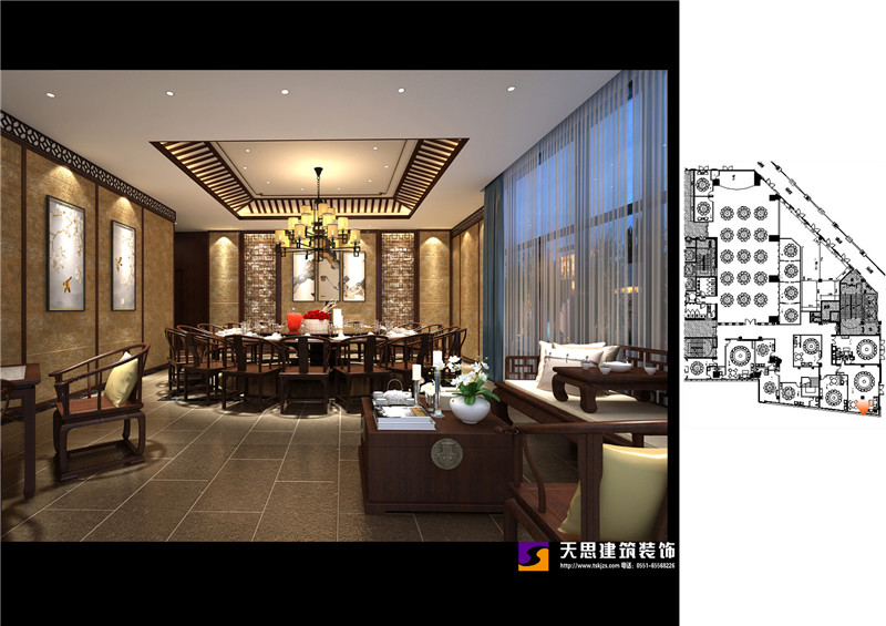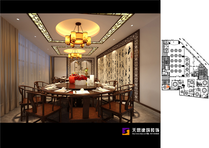 夢徽州酒店四樓火鍋店設(shè)計(jì)效果