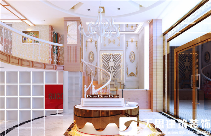 Gucci主要采用的是歐式設(shè)計(jì)風(fēng)格,一個(gè)成熟品牌給人的第一感覺應(yīng)該是具有高度美感的視覺享受。對(duì)于品牌服裝店來說,裝修風(fēng)格到位就是成功的一半。會(huì)給人以隨意、輕松的感覺,有對(duì)比強(qiáng)烈的色彩和絢爛的燈光,折放、正面展示、側(cè)面展示要互相穿插,貨架的擺放要在隨意中又有整體的感覺。女裝區(qū)的色彩要有女人味,線條以流線、纖細(xì),柔和的燈光。
