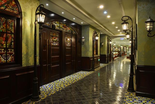 設(shè)計(jì)說明:整個(gè)餐廳以民國時(shí)期的重慶來打造,以民國建筑和民俗風(fēng)情為藍(lán)本,以民國時(shí)期六對(duì)著名的戀人作主題,就連服務(wù)員的服裝也特別制作為民國學(xué)生裝及軍統(tǒng)軍裝。紙醉金迷,恍若隔世。
