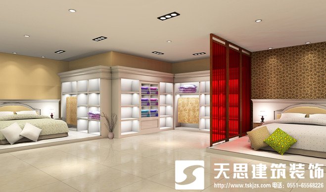 家紡店裝修設(shè)計(jì),家紡店裝修裝飾一定要找正規(guī)專業(yè)的裝修裝飾公司,這樣才能保證設(shè)計(jì)和裝修的質(zhì)量!安徽天思建筑裝飾工程有限公司是一家專業(yè)公裝公司,擁有國(guó)家等級(jí)資質(zhì),集家裝、工裝、綠化園藝、監(jiān)理、裝飾材料為一體的現(xiàn)代裝飾企業(yè)。擁有專業(yè)的設(shè)計(jì)和裝修團(tuán)隊(duì),充分實(shí)現(xiàn)了人力資源的優(yōu)勢(shì)整合。借助先進(jìn)的施工技術(shù)和合理的人員配置,確保服務(wù)的質(zhì)量、時(shí)效性和低成本。