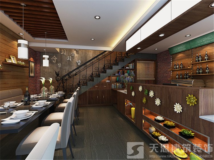 韓國(guó)紫菜包飯屬于一家連鎖店,在合肥目前有接近10家分店,在裝修風(fēng)格上結(jié)合了地域文化特點(diǎn),韓國(guó)人的居住空間比較狹小,對(duì)空間的利用非常緊湊。席地而坐的生活習(xí)慣讓他們呈現(xiàn)出一種低姿態(tài)的,貼近自然的生活形態(tài),居室的設(shè)計(jì)所呈現(xiàn)出來的是小家碧玉式的精致,沒有奢華和張揚(yáng)??臻g裝飾多采用簡(jiǎn)潔、硬朗的直線條 ,反映出現(xiàn)代人追求簡(jiǎn)單生活的居住要求,迎合了韓式家居追求內(nèi)斂、質(zhì)樸的設(shè)計(jì)風(fēng)格。