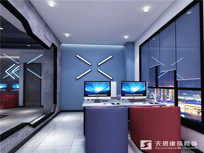 根據(jù)業(yè)主的要求,網(wǎng)咖設(shè)計的整體顏色以淺色為主,中間穿插對比強烈的撞色系來展現(xiàn)效果。