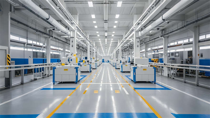 本6500㎡廠房設(shè)計(jì)采用現(xiàn)代工業(yè)風(fēng)為核心,融合功能性與科技美學(xué)。空間規(guī)劃嚴(yán)格遵循生產(chǎn)流程,劃分生產(chǎn)、倉儲(chǔ)、辦公、輔助四大模塊,通過鋼架玻璃隔斷實(shí)現(xiàn)通透性與分區(qū)管理。主色調(diào)選用深灰、淺灰、企業(yè)藍(lán)三色體系,地面采用耐磨環(huán)氧地坪漆,墻面運(yùn)用金屬波紋板與混凝土質(zhì)感涂料。智能化設(shè)計(jì)貫穿全廠,集成AGV物流系統(tǒng)、環(huán)境監(jiān)測屏及LED導(dǎo)向標(biāo)識(shí)。重點(diǎn)區(qū)域如入口LOGO墻、橙色休息區(qū)等植入色彩心理學(xué)應(yīng)用,既保持工業(yè)空間理性特質(zhì),又提升員工舒適度。照明系統(tǒng)采用分級(jí)控制,生產(chǎn)區(qū)6500K高顯指LED工礦燈保障作業(yè)精度,辦公區(qū)4000K暖光營造高效氛圍。