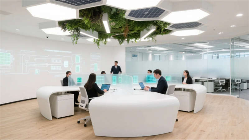 開放式辦公區(qū)打破傳統(tǒng)壁壘,蜂窩狀工位與懸浮綠植裝置詮釋靈動協(xié)作,透明屏幕上的數(shù)據(jù)流與玻璃隔斷投影的生產(chǎn)流程圖虛實相映??偛每臻g則如懸浮的智慧中樞,弧形落地窗將車間全景化作動態(tài)壁畫,金屬與大理石的碰撞間,流淌著決策與創(chuàng)新的電流。智能倉儲區(qū)立體貨架的金屬骨骼間,無人機如蜂鳥般掠過貨品,天光與電子標簽的光斑在環(huán)氧地面上跳動著數(shù)字時代的韻律。