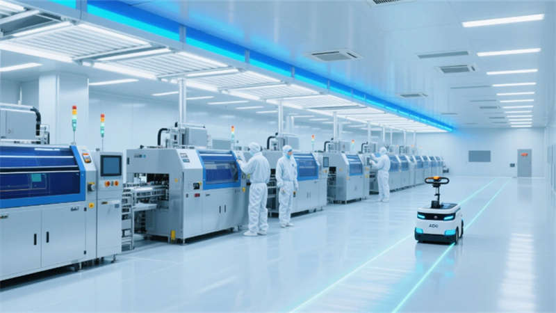 這個潔凈車間廠房,以未來工業(yè)美學為語言,詮釋新能源智造的全新范式。通透的玻璃幕墻與菱形光伏屋頂交織,將自然光引入車間,與冷調LED光帶共構科技與生態(tài)的平衡。核心生產(chǎn)區(qū)如同精密運轉的“硅基心臟”,層流送風系統(tǒng)無聲守護著無塵環(huán)境,自動化設備在藍色光暈中有序協(xié)作,AGV穿梭的軌跡編織出無聲的效率詩篇。
