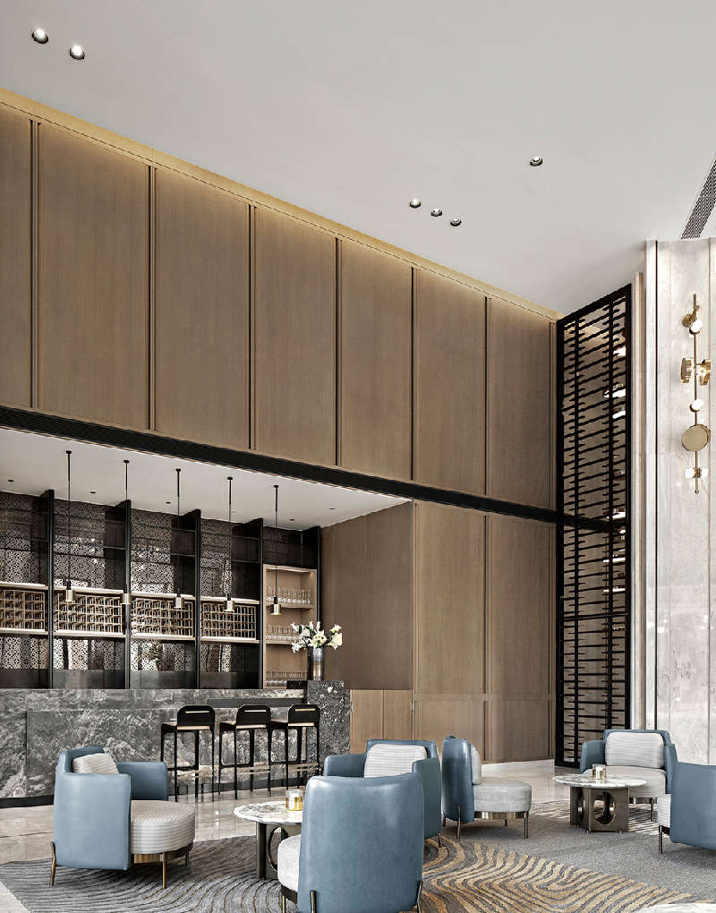 酒店大堂的設(shè)計(jì)著眼於化繁為簡(jiǎn),摒棄以往酒店富麗堂皇的水晶吊燈,采用了更為輕快時(shí)尚的設(shè)計(jì),成穩(wěn)大氣的色調(diào)給顧客一種回歸本質(zhì)的自由形態(tài)。