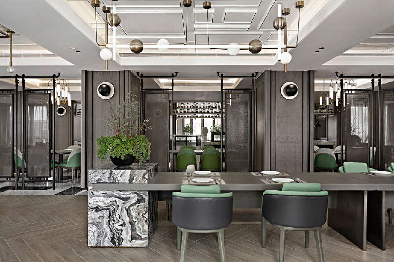 在色彩的運(yùn)用上搭配淡色系為主色調(diào),既體現(xiàn)出餐廳的品質(zhì)感,又能讓人感受到賓至如歸的熱情。