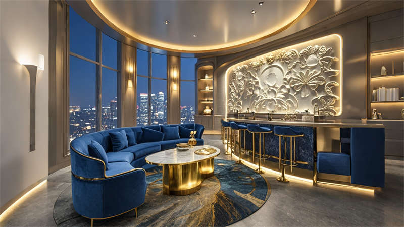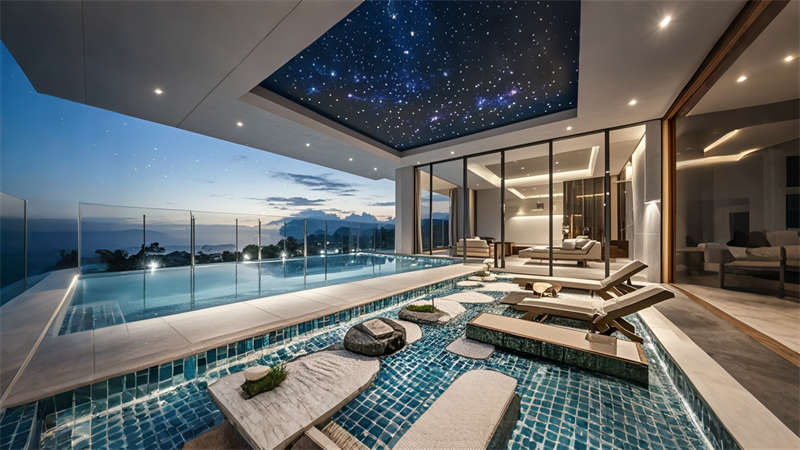 本案為6000平現(xiàn)代輕奢風(fēng)格商務(wù)酒店,以 ' 城市綠洲 ' 為設(shè)計理念,將自然元素與科技美學(xué)融合。空間規(guī)劃采用動靜分區(qū)原則,1-3 層為公共接待區(qū),4-8 層設(shè)置標(biāo)準(zhǔn)客房,9-10 層規(guī)劃行政專屬空間。色彩體系以香檳金、深海藍(lán)、暖灰為主調(diào),搭配天然木紋與石材肌理,營造低調(diào)奢華的氛圍。智能系統(tǒng)貫穿全樓,包含環(huán)境光感調(diào)節(jié)、聲學(xué)優(yōu)化及空氣質(zhì)量管理。特色設(shè)計包括大堂三維立體藝術(shù)墻、客房可變光環(huán)境系統(tǒng)、頂層無邊際星空泳池,以及模塊化多功能會議系統(tǒng),充分滿足商務(wù)客群對品質(zhì)與效率的雙重需求。