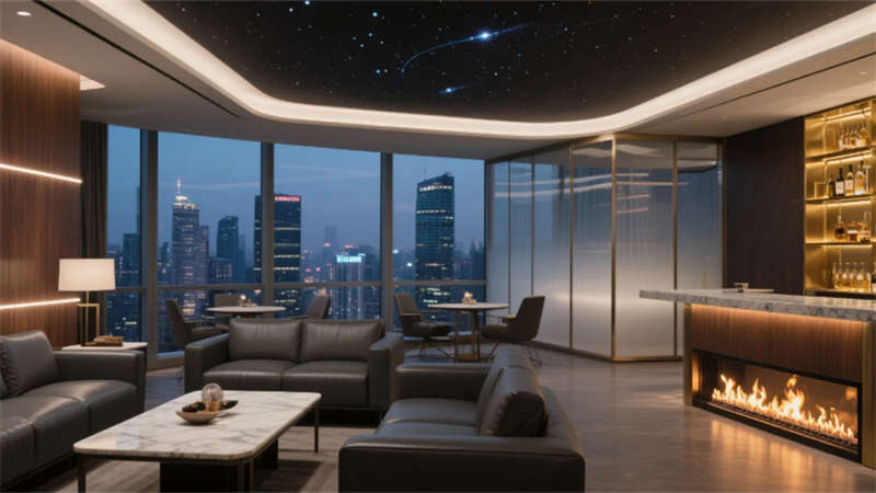 最驚艷的屋頂花園酒吧,木格柵切割都市夜空,發(fā)光吧臺與夜光植物墻在霧化玻璃間若隱若現(xiàn),火光與星空投影為每杯特調(diào)注入故事感。這座酒店不止是棲居之所,更是一場穿越材質(zhì)、光影與城市天際線的沉浸藝術(shù)展。