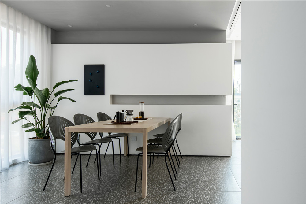 特色墻面 耐臟也很神秘,當(dāng)然不能是全部黑色。雖然黑色磕碰掉以后也會(huì)很難打理修補(bǔ),但是如果某一面墻體用上黑色的油漆,會(huì)對(duì)空間感有拉伸的效果,這套公寓黑色墻面也與地面非常搭配。