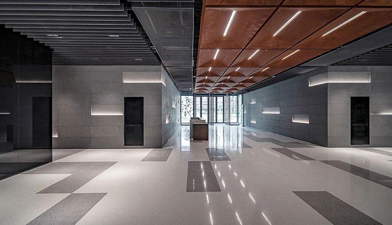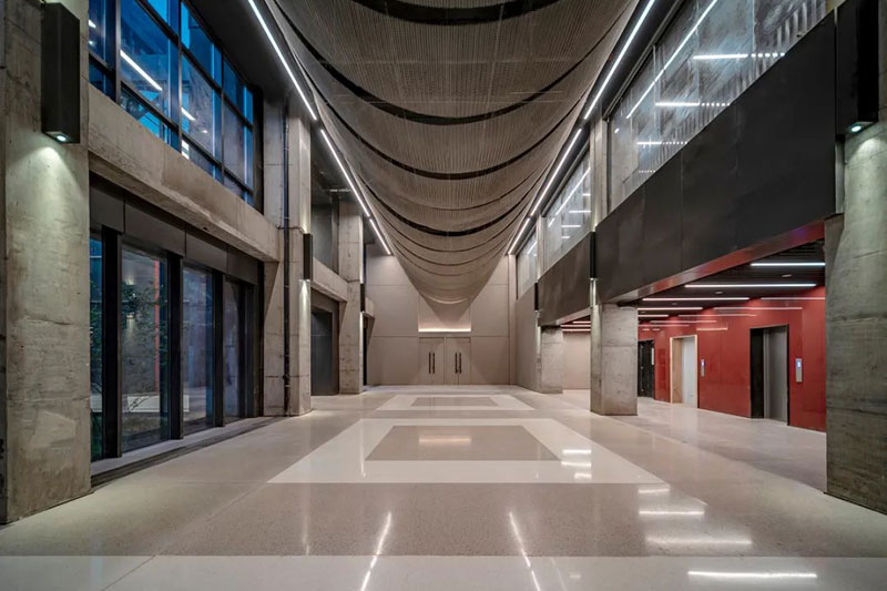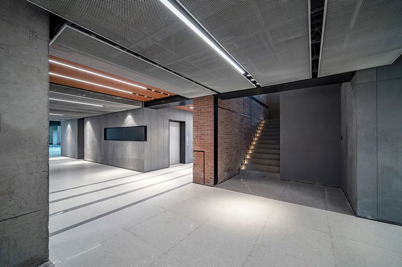 使用材料多以粗獷的質(zhì)感呈現(xiàn),水泥漆、灰泥、銹鋼板、金屬網(wǎng)、水泥板,還有裸露的混凝土,表現(xiàn)出工業(yè)建筑豪放的質(zhì)感。奔放、濃重、豁達,形成室內(nèi)公共空間的性格。
