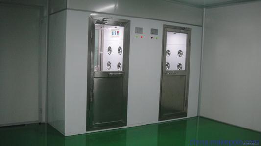 風(fēng)淋室是一種通用性較強(qiáng)的局部?jī)艋O(shè)備,安裝于潔凈室與非潔凈室之間。當(dāng)人與貨物要進(jìn)入潔凈區(qū)時(shí)需經(jīng)風(fēng)淋室吹淋,其吹出的潔凈空氣可去除人與貨物所攜帶的塵埃,能有效的阻斷或減少塵源進(jìn)入潔凈區(qū)。風(fēng)淋室/貨淋室的前后兩道門為電子互鎖,又可起到氣閘的作用,阻止未凈化的空氣進(jìn)入潔凈區(qū)域。