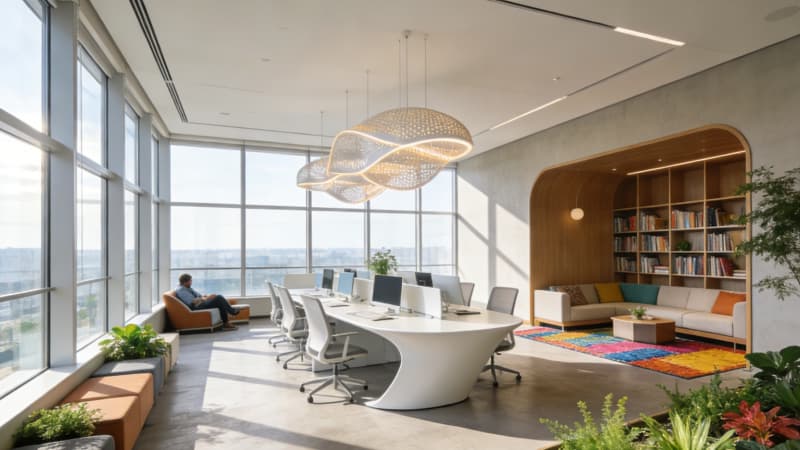 在色彩運用上,選用灰白色系為主體,搭配木色與綠色作為點綴?;野咨{體現(xiàn)工業(yè)的簡潔與冷靜,木色帶來自然溫暖的氛圍,綠色則呼應黃山的自然生態(tài),為空間注入生機。材料選擇注重質感與功能性,如金屬、玻璃、混凝土與木材的結合,展現(xiàn)現(xiàn)代工業(yè)的質感與自然材料的親和。