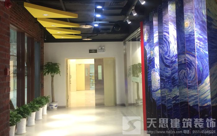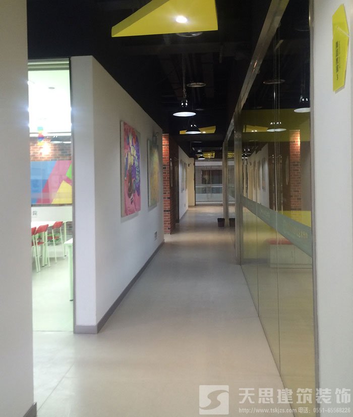 以下圖片,節(jié)選自待完工的工地現(xiàn)場,分別是入口、大廳、過道、教室、活動(dòng)中心等功能區(qū)域。整體選擇LOFT混搭風(fēng)格,裸露的天花板+墻面,搭配現(xiàn)代元素,既節(jié)省了裝修成本,也營造了“藝術(shù)人生”的環(huán)境。
