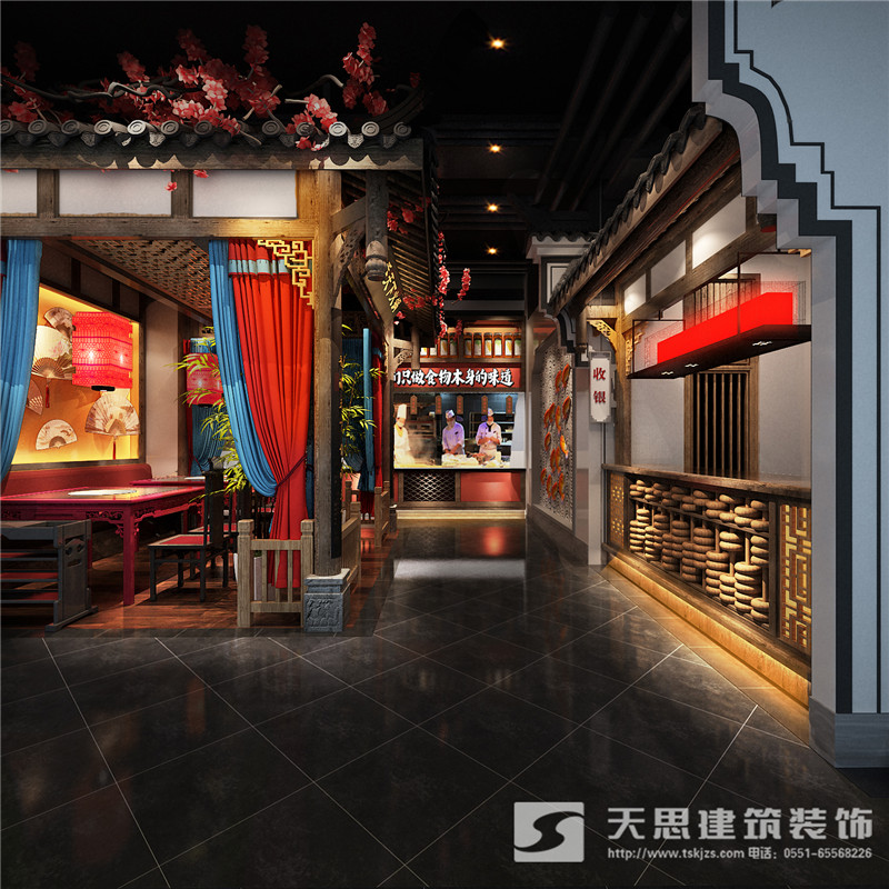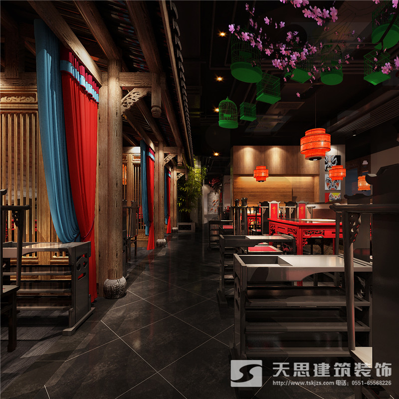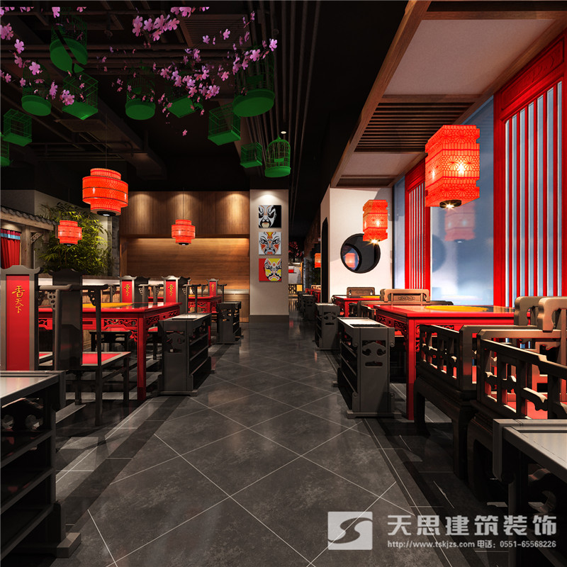 本次為合肥香天下火鍋店分店徽淮南店裝修設(shè)計(jì)效果,在本次火鍋店設(shè)計(jì)中,設(shè)計(jì)師采用新中式做為空間設(shè)計(jì)風(fēng)格,設(shè)計(jì)師希望讓客戶(hù)在這里感受到不一樣的氛圍。