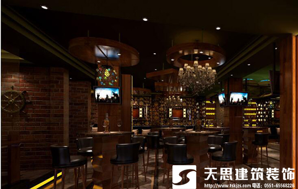 合肥天思裝飾工程有限公司是一家專(zhuān)業(yè)從事酒吧裝修、休閑會(huì)所裝修、網(wǎng)吧裝修等各種場(chǎng)所裝修設(shè)計(jì)施工。我們致力于為每個(gè)客戶(hù)打造完美空間。酒吧越來(lái)越受到人們的重視。越來(lái)越多地出現(xiàn)中國(guó)都市的一個(gè)個(gè)角落。酒吧品種多多,酒吧的情調(diào)迷人,且不乏激情,它成為青年人的天下,更是黑夜不歸的一種默許。酒吧的興起與紅火已經(jīng)成為了當(dāng)今時(shí)代不可否認(rèn)的事實(shí)。因此對(duì)于酒吧裝修的品味也在不斷提高著。今天就帶大家看看幾個(gè)酒吧裝修的效果圖。