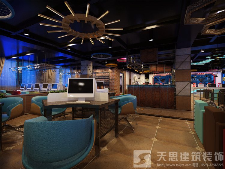 3、網(wǎng)咖的設計應該涉及到每一個點、線、面,保證每個地方都沒有疏漏,還要突出與眾不同的個性化特點。比如墻面可以做大型噴畫和網(wǎng)咖LOGO,或噴涂成符合網(wǎng)咖裝飾格調的顏色,保證網(wǎng)咖整體視覺的大氣和舒適。