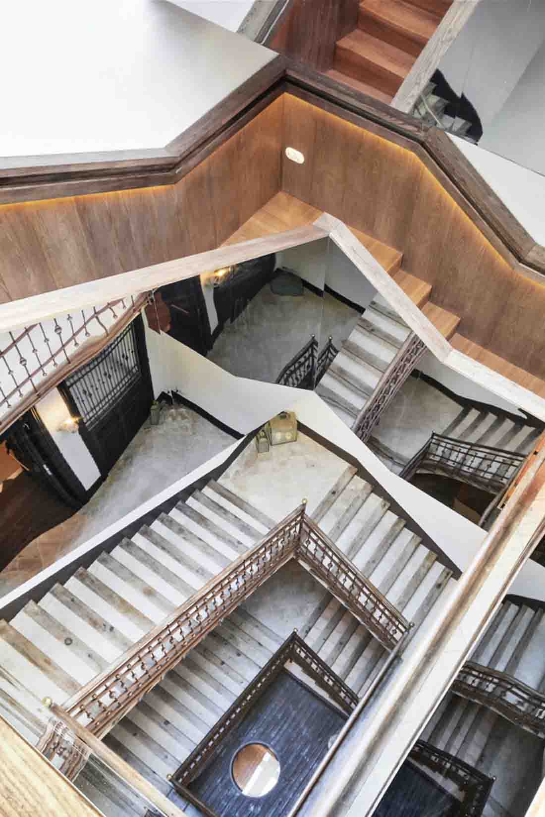 設(shè)計(jì)師旨在喚起比酒店更多的參觀房屋的經(jīng)歷。因此,客戶不是在酒店接待處而是在房子的門(mén)廳見(jiàn)面;找到的餐廳而不是餐廳,而是找到了居民用餐室,這些房間和客廳就像您在老房子中找到的那樣。該項(xiàng)目精心保留了建筑物中浪漫的氛圍,并與不同時(shí)期的干預(yù)和元素進(jìn)行了有意識(shí)的對(duì)比。這是對(duì)現(xiàn)有百年建筑雜交的尊重,它保留了過(guò)去的痕跡,并避免了房屋從未擁有過(guò)的輝煌過(guò)去的錯(cuò)誤恢復(fù)。