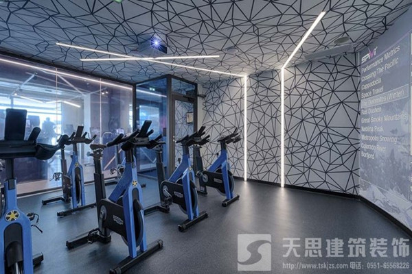 動感單車房的裝修和健身操房大同小異,但也要注意與整個健身房的融合統(tǒng)一。動感單車是一個特殊項(xiàng)目,具有極強(qiáng)的煽動性,可以即刻提升會員或參觀者的健身欲望,因此一般安排在整個健身房比較醒目的空間位置。