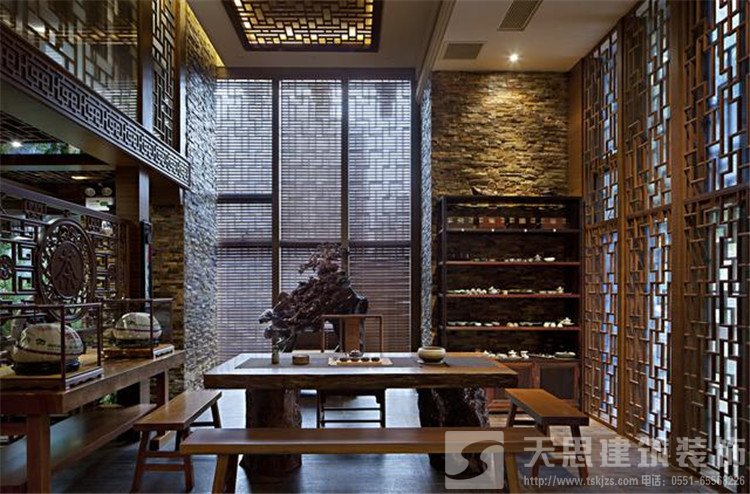 特色茶樓裝飾裝修知識給人帶來精品體驗,運(yùn)用經(jīng)典空間中帶來經(jīng)典的享受.給人享受茶境中內(nèi)蘊(yùn)深淵的意境.中式茶樓中木作多不事彩繪而是通過注重磨工和較好的桐油髹漆進(jìn)行木作材料部分的保護(hù)和裝飾.