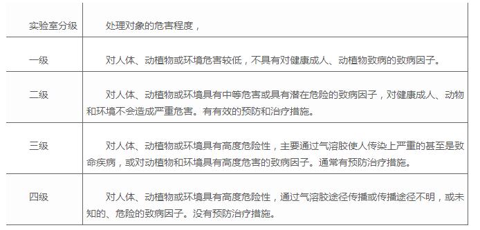 實驗室工作人員在處理病原微生物、含有病原微生物的實驗材料或寄生蟲時,為確保實驗對象不對人和動植物造成生物危害,確保周圍環(huán)境不受其污染,對實驗室和動物實驗室的設(shè)計與建造都有特別的要求.