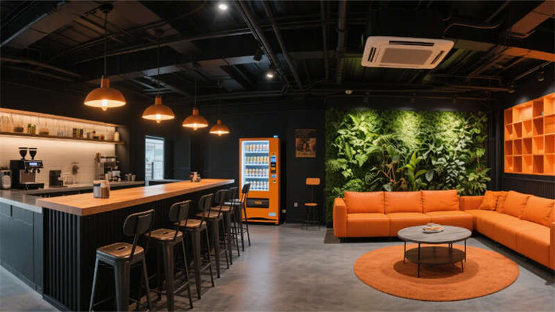 人性化細(xì)節(jié)貫穿各區(qū)域:電梯廳導(dǎo)向系統(tǒng)與隱藏式消防設(shè)施實(shí)現(xiàn)功能隱形化,員工休息區(qū)混搭工業(yè)風(fēng)吧臺與暖光沙發(fā),搭配咖啡機(jī)與綠植墻釋放壓力。設(shè)計(jì)同步植入環(huán)保理念,采用低能耗照明系統(tǒng)、空氣監(jiān)測模塊及可回收建材,構(gòu)建健康可持續(xù)的辦公生態(tài),傳遞企業(yè)面向未來的品牌價(jià)值觀。