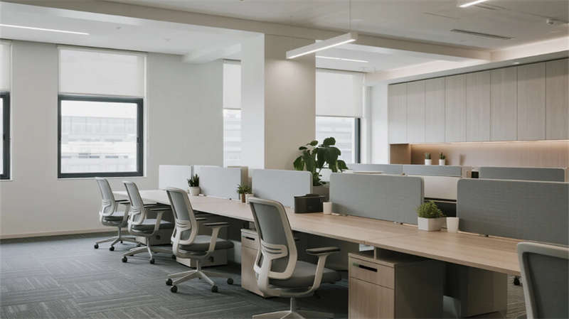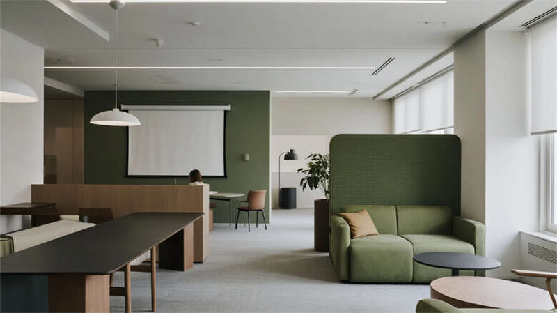 設計中注重舒適與可持續(xù)性,大量運用自然光和綠植,不僅提升空間活力,還呼應了生態(tài)友好的理念。智能照明系統(tǒng)根據不同時段調節(jié)亮度,強化了現(xiàn)代感。整體空間布局靈活,避免了僵化分區(qū),使辦公體驗更具人性化。該方案旨在為使用者提供一個激發(fā)創(chuàng)造力、促進協(xié)作的理想場所,每一處細節(jié)都體現(xiàn)了簡約而不簡單的美學追求,讓日常工作充滿活力與歸屬感。