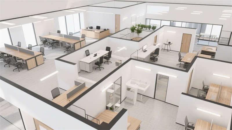 細節(jié)處理上,墻面采用簡潔的裝飾手法,避免過多繁復(fù)造型,地面材質(zhì)選擇耐磨且易清潔的種類,既符合辦公空間的實用需求,也保持了整體風(fēng)格的統(tǒng)一性。整體設(shè)計沒有多余的裝飾堆砌,而是通過對空間、色彩、材質(zhì)的精準(zhǔn)把控,打造出一個兼具美學(xué)感與實用性的辦公環(huán)境,讓辦公空間既簡潔大氣,又能滿足日常辦公的各項功能需求。