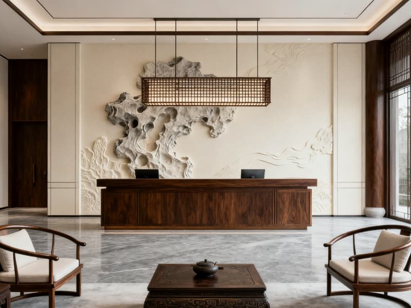 細(xì)節(jié)設(shè)計(jì)中,將宿州文化元素巧妙融入,如靈璧石紋理背景墻、仿漢闕入口景墻、非遺手工藝品陳列等,增強(qiáng)空間的地域認(rèn)同感;同時(shí)注重人性化與實(shí)用性,采用人體工學(xué)家具、智能感應(yīng)設(shè)備、隱形收納系統(tǒng)等,提升辦公舒適度與空間利用率。整體設(shè)計(jì)既滿足現(xiàn)代商務(wù)辦公的高效需求,又通過(guò)中式美學(xué)與地域文化的融合,為企業(yè)打造獨(dú)具格調(diào)的辦公環(huán)境。