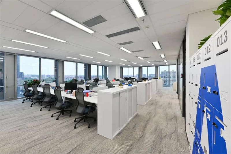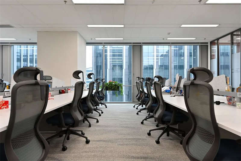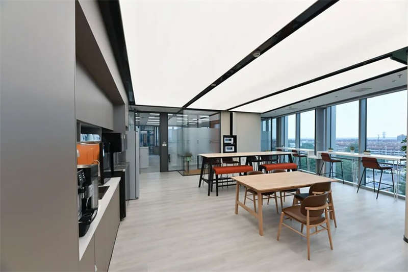 員工區(qū)部份選用了電動(dòng)可調(diào)的升降辦公桌,以滿(mǎn)足員工個(gè)性化的需求,白灰色的家具搭配,混搭淺木色的休閑洽談區(qū)域,地面選用流線(xiàn)款長(zhǎng)版的無(wú)膠水鋪裝的地毯相呼應(yīng)。提升了空間品質(zhì)和美感。