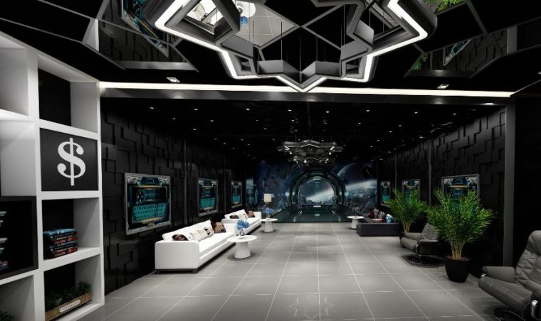 俗話說,氣氛不能輸,一個氣場極強(qiáng)的電競會館絕對可以讓玩家、選手釋放個人最大戰(zhàn)斗力,分泌更多的腎上腺素進(jìn)入暴走狀態(tài)。本次案例整體設(shè)計(jì)上走的是現(xiàn)代前衛(wèi)風(fēng),以黑色為主色調(diào)猩紅色為輔,搭配空間感十足的燈光和炫酷的裝飾元素,緊緊扣合“紅蜘蛛”的品牌主題,同時非常凸顯時尚特色,符合消費(fèi)群體定位。